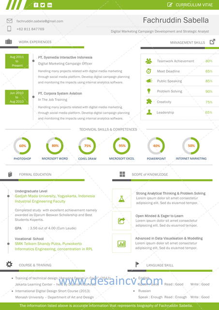 Desain cv kreatif: greenia contoh cv kreatif dan elegan
